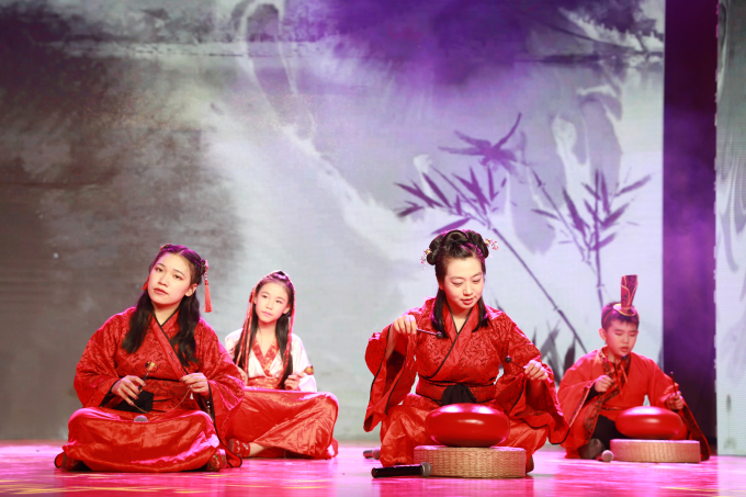 初心艺苑(厦门)文化艺术中心带来器乐朗诵《礼仪之邦》。演奏这个节目的乐器并不常见,叫色空鼓,是将西周时期的编钟改良成的一种乐器。色空鼓音质空灵悠远、深沉醇厚,与国学朗诵相结合,不仅可以养德,还能开启心性。