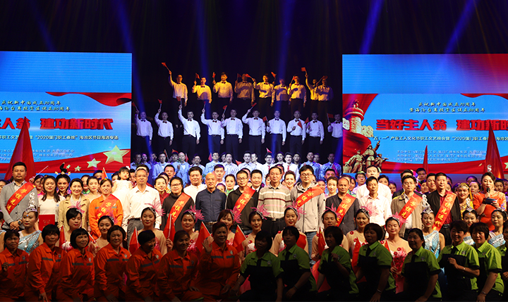 这是一场职工们的节日盛会,为劳动者献上了一曲浓墨重彩的赞歌。5月7日晚,“当好主人翁 建功新时代”海沧区产业工人文化节启动仪式暨“2020厦门职工春晚”节目海选海沧区专场在沧江剧院举行。市总工会党组成员、副主席刘义平,市总工会党组成员、经审会主任蔡志凯,海沧区委常委、统战部长、区总工会主席廖凡,区委常委、宣传部长欧阳丽娟,区总工会常务副主席叶通水等领导与先进模范和一线职工代表一同观看演出。