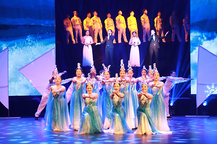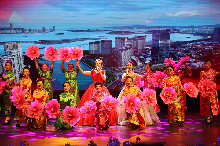 “我和我的祖国,一刻也不能分割……”在晚会现场,聚光灯投射在一名手持国旗的可爱小女孩身上,稚嫩的童声唱响了《我和我的祖国》,随后,舞台上聚集了越来越多的表演者,全场同唱一首歌,职工们载歌载舞,表达对新中国成立70周年暨海沧台资投商区设立30周年的祝福与歌颂,把整场晚会推向高潮。
