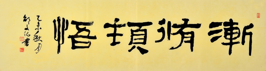 我以为学习书法要明确两个要素。一是方向,取法乎古,取法乎高,善于归纳总结,把古代经典碑帖作为取法的范本。二是方法,要独具慧眼,与经典碑帖对话,并将其规律转化应用到创作中。文化先生的书法作品主要是隶书和草书,他的隶书取法于汉碑。如礼器碑、曹全碑等;他的草书主要取法于王羲之,张旭和现代的于右任。在方向和方法上,他都解决得好。
