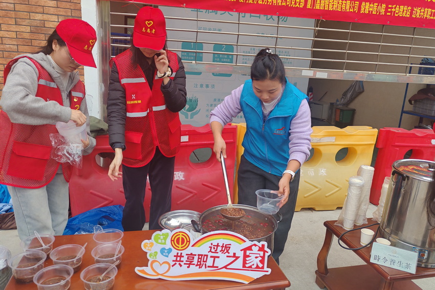 活动现场最暖意融融的,莫过于腊八粥发放点。厦门捷亦宏劳务有限公司党支部提供的腊八粥,香甜软糯。劳动者们捧着手里的暖粥,品尝着传统的味道,脸上绽放出朴实的笑容。这不仅仅是一碗粥,更是工会“娘家人”温暖的关怀,是社工与志愿者们用心用情服务的生动体现。此外,养生茶品尝与小礼品赠送等活动也同步开展,进一步丰富了服务内涵,延伸了关爱触角。
