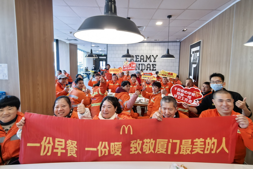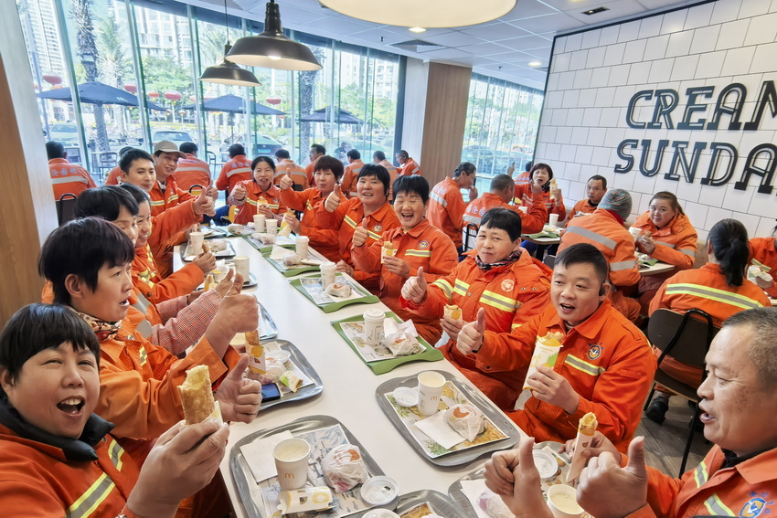 春节临近,城市生活节奏悄然变化,不少早餐店过年歇业、菜市场收摊,而爱心商家的主动补位,则为“城市美容师”们架起一座暖心桥。“真好,有人还惦记着我们。”从事环卫工作15年的王美金感慨道。她的班组负责嵩屿片区的环卫保洁,春节期间正是繁忙时段。此次活动,海沧麦当劳门店将在春节前,分3批次将1000份早餐送达环卫工人、绿化工人手中。门店负责人卢萍萍表示:“环卫工人、绿化工人们每天起得早,工作又辛苦,我们希望这份早餐能让他们吃得饱、吃得好,感受到被尊重、被惦记的温暖。”这份提前的“新年礼物”,既是爱心企业对基层劳动者的致敬,也是城市文明温度的生动注脚。