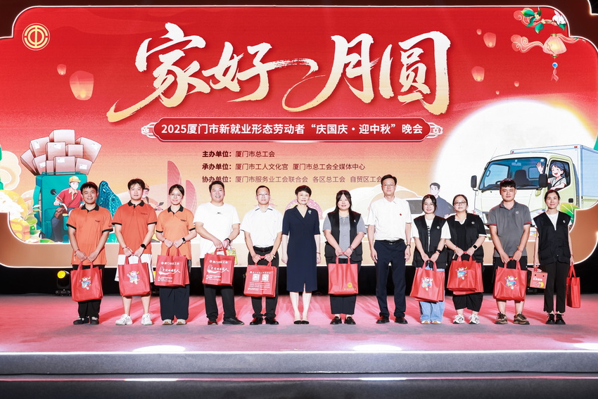 9月28日,“家好·月圆”2025厦门市新就业形态劳动者“庆国庆·迎中秋”晚会在厦门五一广场举行。300多名新就业形态劳动者一起围桌赏月,共度一场温馨团圆的“暖新”之约。