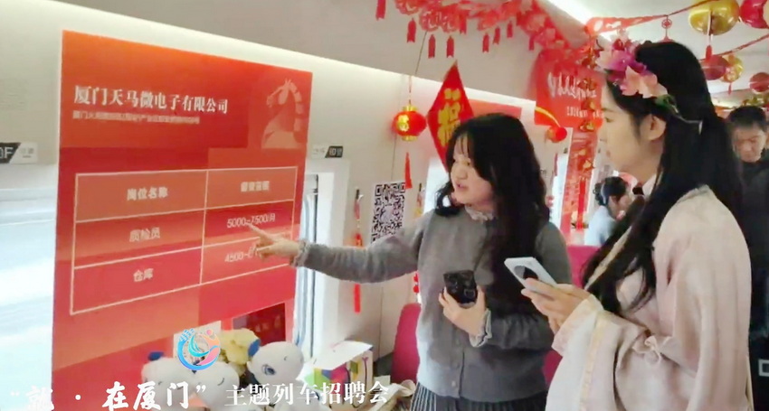 发车仪式现场,各招聘企业步入“就·在厦门”号列车,创新性地开展“列车直播带岗”招聘模式。在列车上,企业详细介绍岗位设置,与求职者进行“云端”交流,并实时答疑解惑。据悉,“春风行动”期间,计划安排外出招聘线路20条,发动我市重点企业赴劳务输出大省开展招聘,深化东西部协作等机制。除线下系列招聘活动外,今年“春风行动”还首次开发线上厦门专区,集中发布厦门招工引才政策清单、重点产业企业优质岗位清单和工会福利。