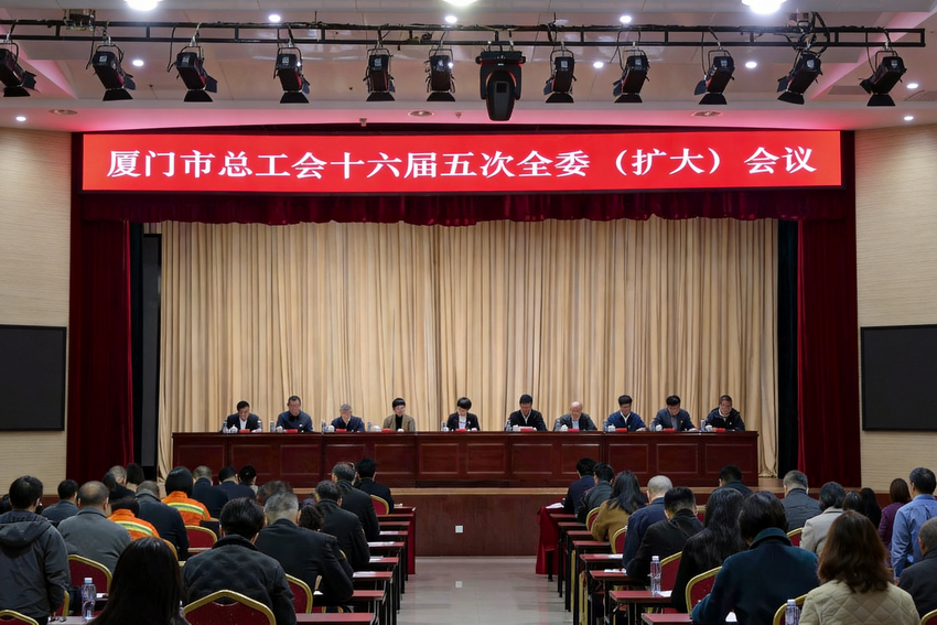 厦门市总工会第十六届五次全委(扩大)会议于2月10日召开。会议全面贯彻党的二十大和二十届历次全会精神,深入学习贯彻习近平总书记关于工人阶级和工会工作的重要论述特别是在庆祝中华全国总工会成立100周年暨全国劳动模范和先进工作者表彰大会上的重要讲话精神,贯彻落实省委十一届九次全会、市委十三届十次全会及全总十八届四次执委会议、省总十四届六次全委会议精神,总结2025年工会工作,部署2026年工作任务,并履行有关人事事项的民主程序。厦门市委常委、市总工会主席王雪敏主持会议并讲话。