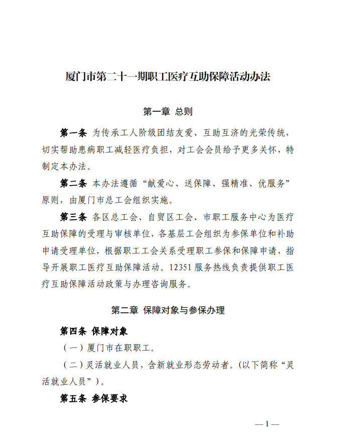 厦门市总工会关于开展第二十一期职工医疗互助保障活动的通知
