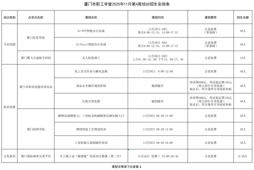6.招生对象、条件及名额:厦门市在职在岗职工均可参与,课程人数限6-20人/期,请勿携带餐食进入。