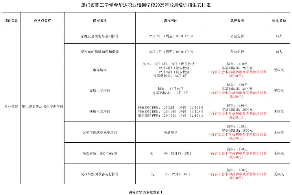 ↓↓↓<厦门市金华达职业培训学校职工学堂课程>