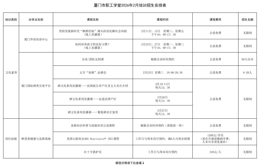 4.招生对象、条件及名额:厦门市在职在岗职工均可参与,人数不限。