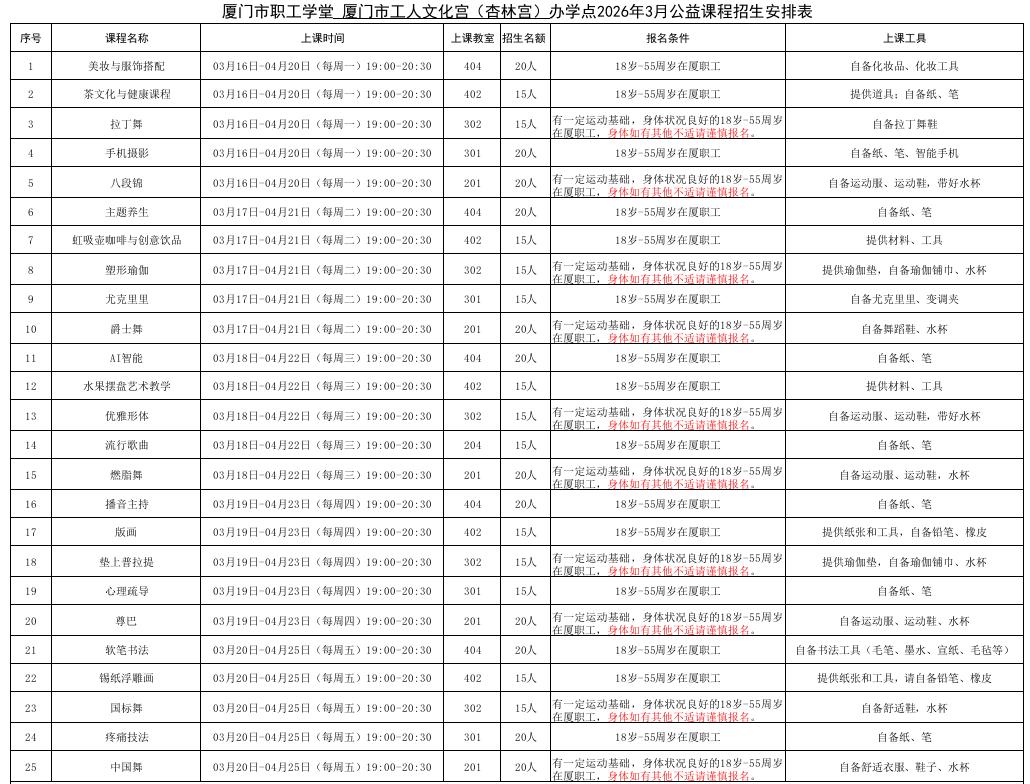 7、培训对象:18-55岁在厦职工。